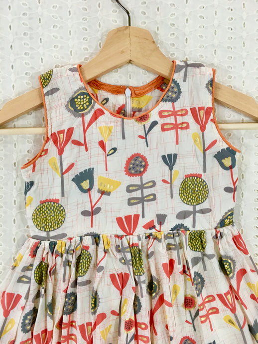 Cream & Peach Gold Prints Frock