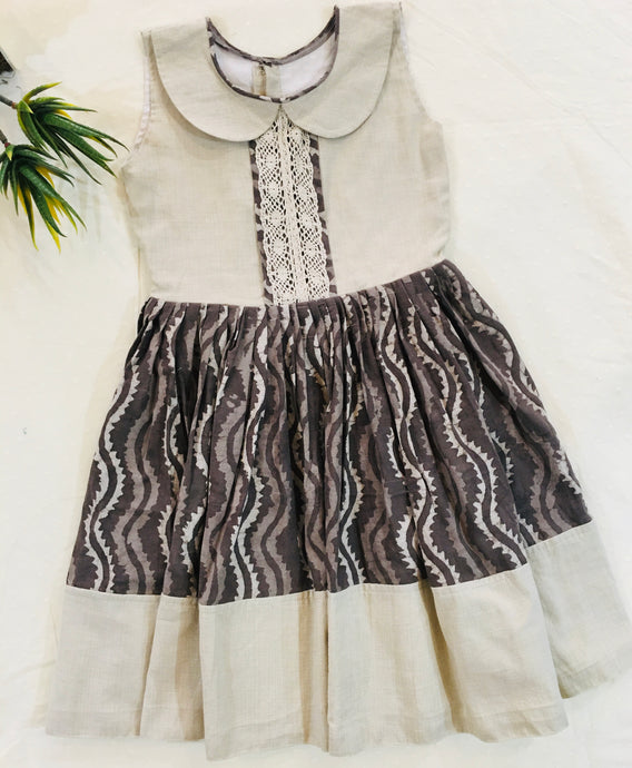 Dusty Grey Handloom Streetwear Peter Pan Collar Frock.
